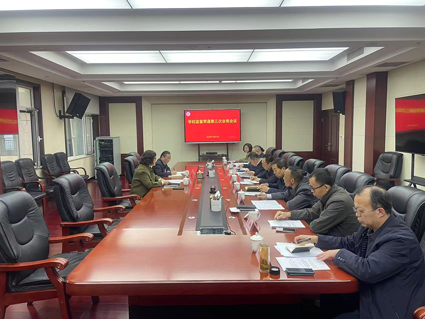 10月21日上午,学校在龙城校区908会议室召开监督贯通第三次会商会议,会商研判当前监督工作中的协同堵点,凝聚监督保障执行的强大合力。校党委副书记薛建武,党委常委、驻校纪检监察组组长燕炯出席会议。会议由薛建武主持。