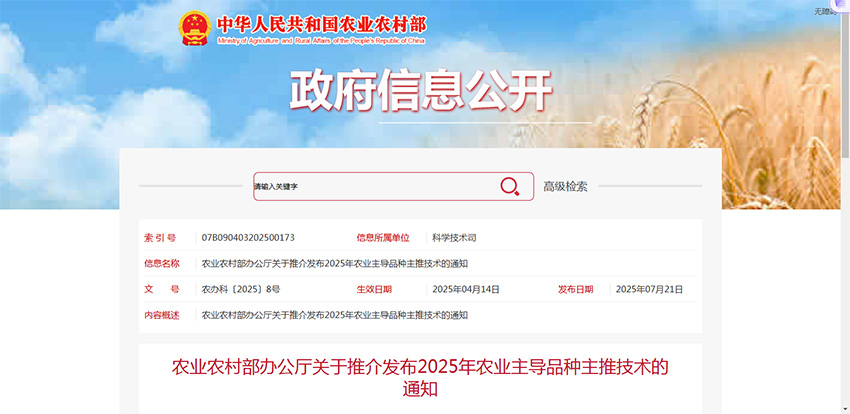 5. 我校8个品种入选2025年国家农作物优良品种推广目录/我校3个品种2项技术入选2025年农业农村部主导品种主推技术