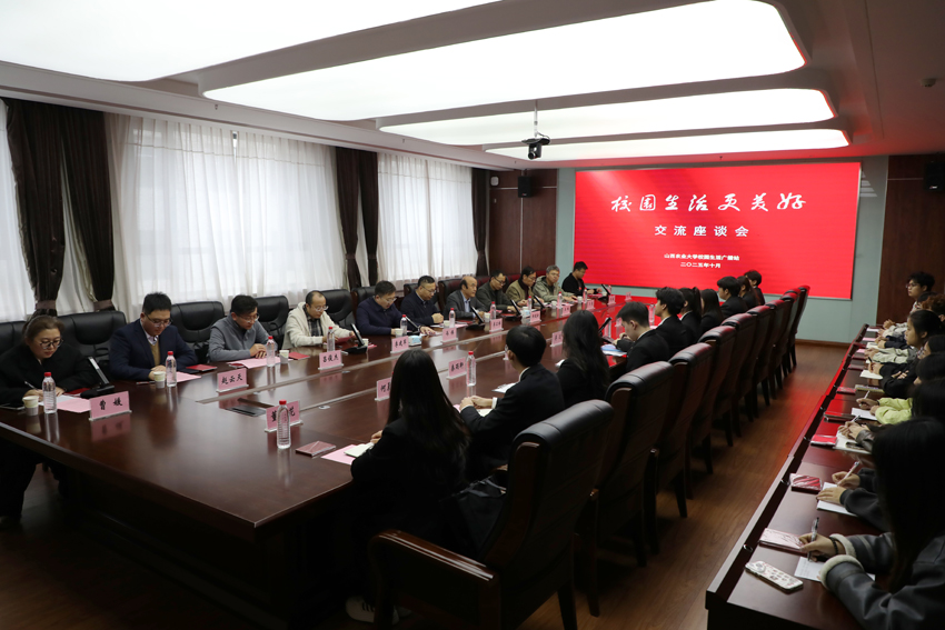 10月18日下午,我校在太谷校区勤学楼318会议室举行校园生活广播站“校园生活更美好”交流座谈会。山西省科协七届、八届副主席、校园生活广播站首届主编郝建新,校党委副书记李卫祥,宣传统战部、校园生活广播站相关负责人以及第40届校园生活广播站部分编委会成员参加座谈会。会议由校团委书记冯伟主持。