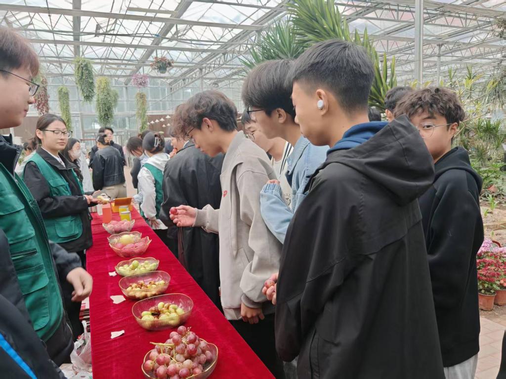 本次展览创新性摒弃了传统展示方式,采用可视化、体验化、互动化的手段,使园艺专业的魅力得以直观展现。展览共设画区、植物展示区、茶文化体验区、学生作品区、插花实践区及水果品鉴区六大板块,全面展示了专业成果与实践场景。在插花实践区,由教师与高年级学生示范插花技巧,使新生能够亲身体验园艺设计的美学理念;水果品鉴区则陈列了我院师生自主种植的大枣、葡萄、苹果、梨子、提子等果实,新生们通过品尝新鲜的作物成果,直观地感受到了园艺种植的实践价值。观展的领导老师们深入各个展区,对学生们将专业知识转化为实践成果的能力表示肯定,并鼓励新生以实践为基础,积极探索园艺领域的创新之路。