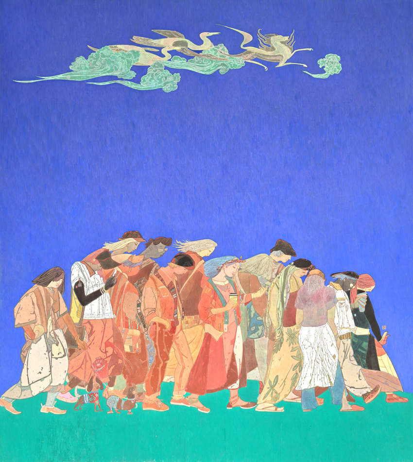 王晓霞作品《羽跫交响》(纸本矿物色187*167cm)
