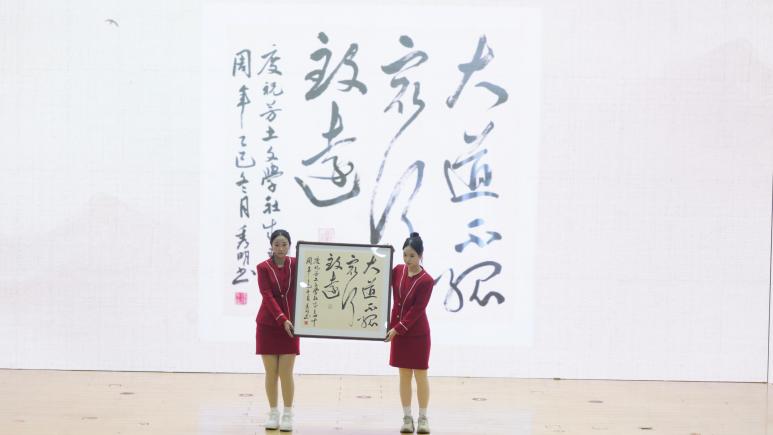 芳土文学社成立早期的主要成员、中国残联副理事长钟秀明特意为本次芳土文学社青春论坛题赠了“大道不孤,众行致远”的珍贵书法作品。