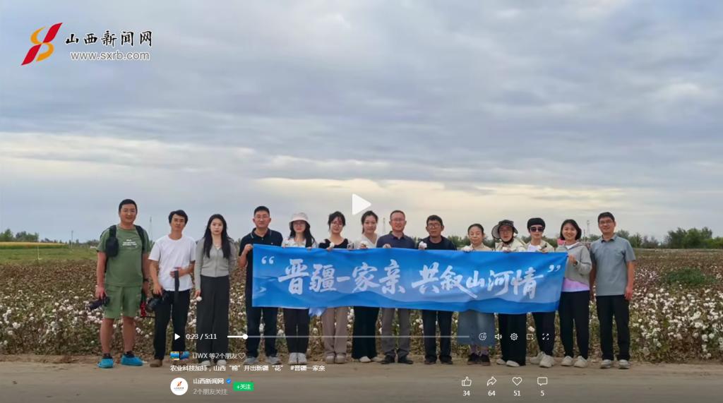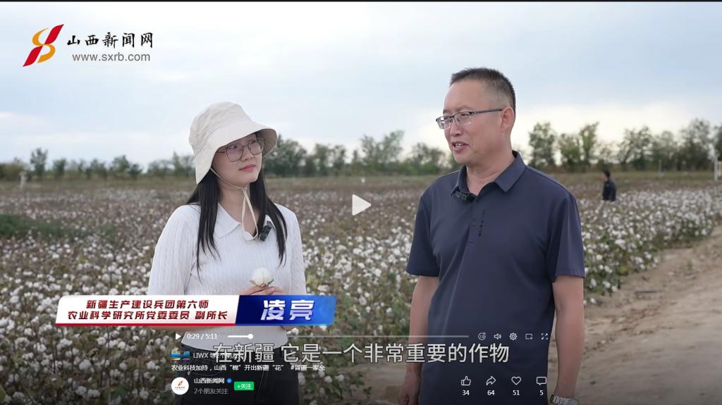 近日,山西新闻网视频号以《农业科技加持 山西“棉”开出新疆“花”》为题,报道我校棉花研究所专家团队在新疆棉花产业种质资源创制,抗虫棉的筛选、引进,棉花高效栽培管理技术等方面作出贡献,助力新疆棉花产业高质量发展。