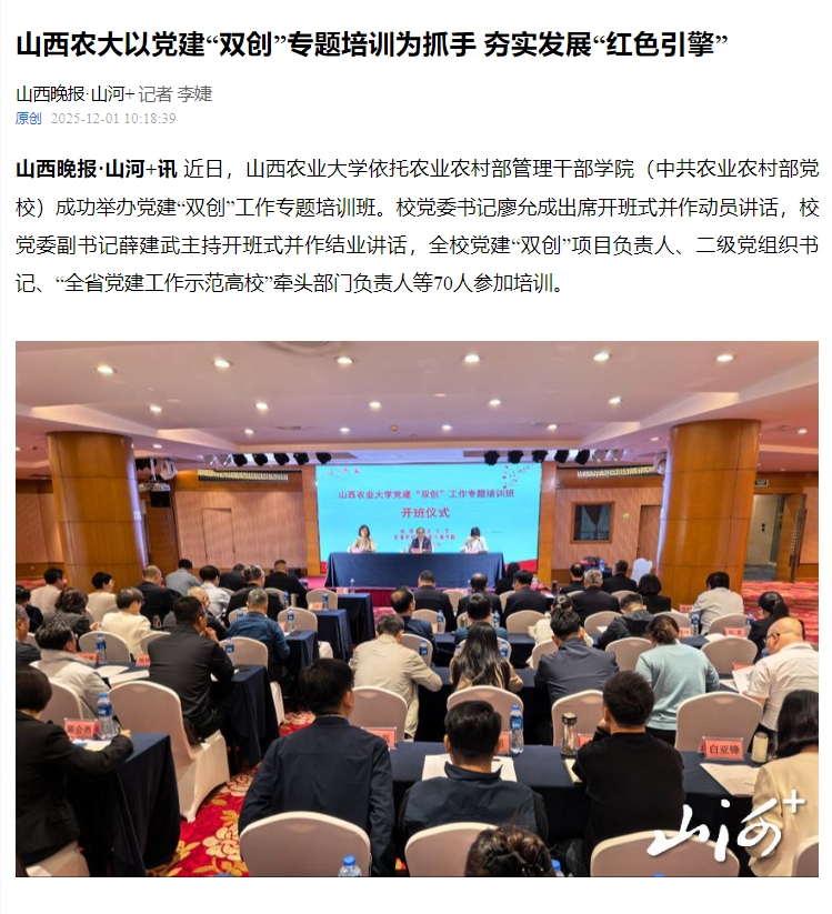 参训学员纷纷表示,此次培训靶向精准、务实管用,既提升了理论素养,又明确了实践路径。今后将把培训所学转化为工作实效,以更加饱满的热情、更加务实的作风投身党建“双创”工作,为学校事业高质量发展提供坚强组织保障,为服务山西农业农村现代化和乡村振兴战略贡献更大力量。