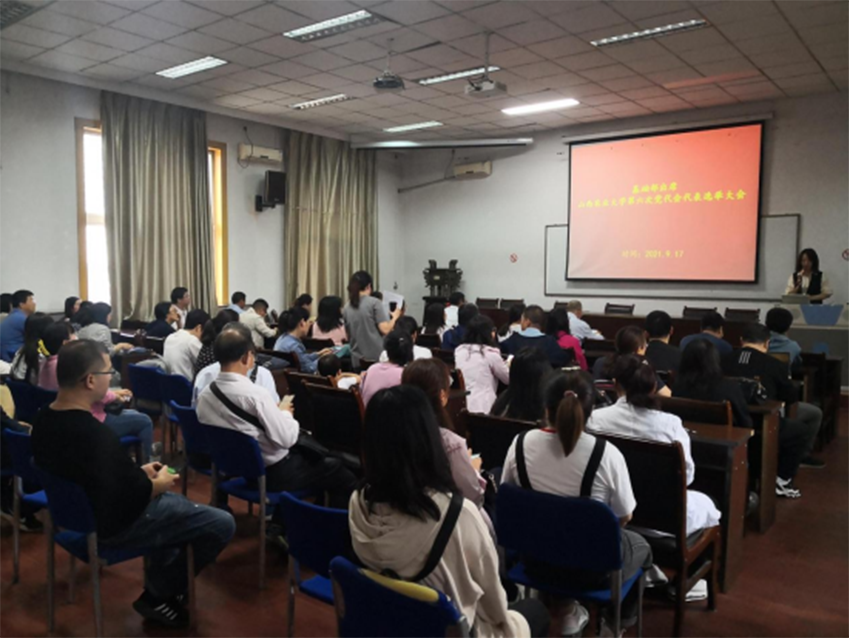 9月17日下午,基础部党委在理化楼四层会议室隆重召开全体党员大会,选举出席中国共产党山西农业大学第六次代表大会代表。基础部党委书记杨志峰、副主任赵晋忠、党委副书记温清琴、副主任杜广华、宋铁花、郝新生及全体正式党员参会。大会由温清琴同志主持。