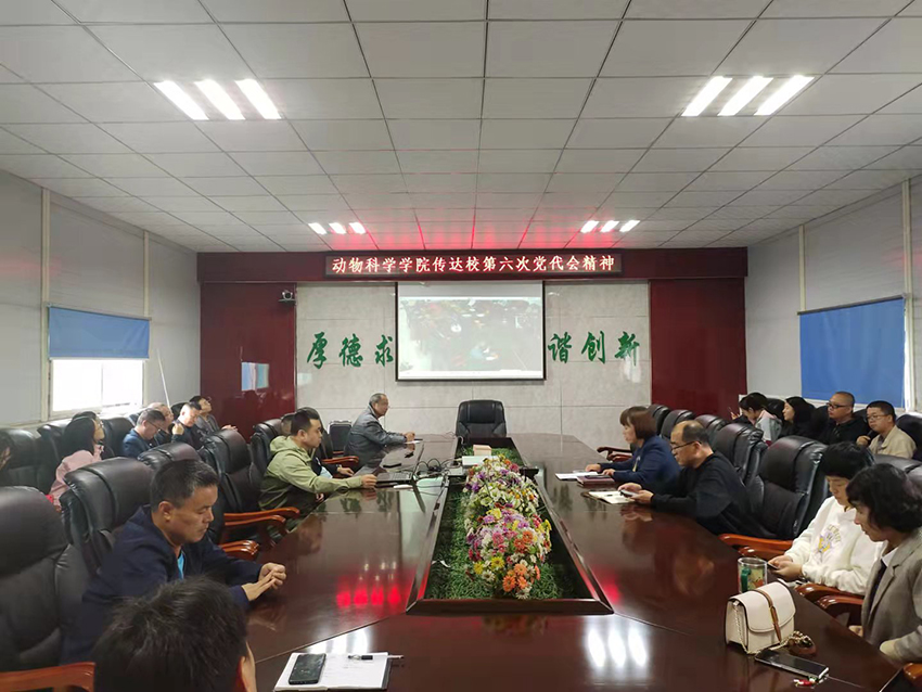 10月4日下午,动物科学学院召开大会,传达学习校第六次党代会精神。会议由动科院党委副书记辛艳伟主持。院领导班子成员、全体教职工和部分学生党员参加。