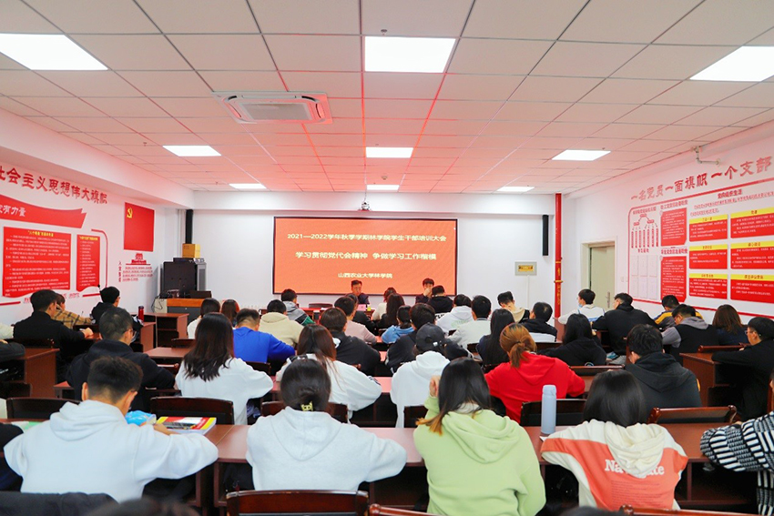10月6日下午,林学院在崇实楼517召开秋季学期学生干部培训大会,学院党委书记周孝作了题为《学习贯彻党代会精神 争做学习工作楷模》的报告,传达并解读了党委工作报告的主要内容和精神,指出学生干部要发挥模范带头作用,要以学习贯彻落实校第六次党代会精神为契机,积极营造深入学习宣传贯彻落实党代会精神的良好氛围。